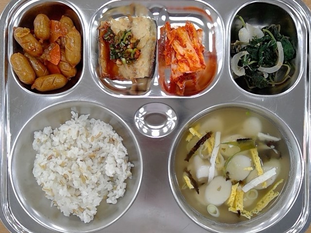 친환경귀리밥한우떡국(1.5.6.8.9.16.18)고등어구이&양념장(5.6.7.13)비엔나야채볶음(2.5.6.10.12.13.15.16)깻잎순무침(5.6.13)배추김치(9)* 에너지/단백질/칼슘/철739.48/35.81/151.63/3.53